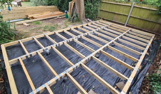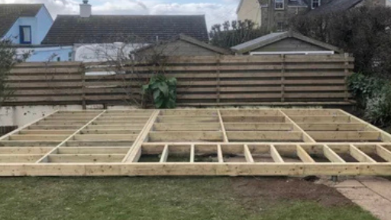 We construct the timber frame directly onto the ground screws, ensuring perfect level and alignment.
